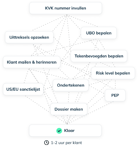 Ingewikkelde Wwft-processen: je ziet hoe UBO-verklaringen, PEP-checks en sanctiescreening kostbare tijd vreten